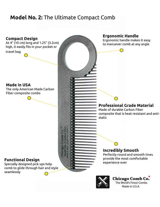Chicago Comb No. 2 Carbon Fiber + Tan Horween leather sheath, Made in USA