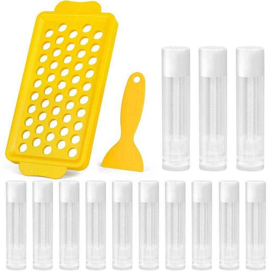 LotFancy Lip Balm Tubes with Filling Tray and Spatula, 50Pcs 5.5ml (3/16 Oz) Clear Lip Balm Containers with White Caps, BPA Free & Leak Free