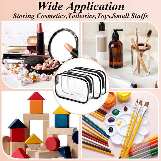 JEFHOMKIT 16 PCS Clear Makeup Bags,Clear Toiletry Bags TSA Approved,Waterproof Clear Cosmetic Bags,PVC Travel Bag with Zipper,Portable Transparent Cosmetic Pouches for Women Men Vacation(Black,Medium)
