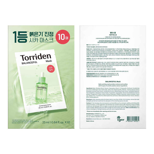 Torriden BALANCEFUL Cica Facial Masks (10 sheets) | Extra Soothing Care | 5D CICA, Hydrolyzed Hyaluronic Acid, Panthenol | Korean Face Mask