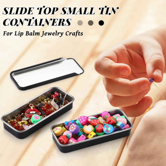 Norme 60pcs Slide Top Small Tins Containers Rectangular Cosmetics Metal Boxes Small Lip Balm Containers Metal Tins with Lids for Lip Balm Jewelry Crafts Pills(Black,1 oz)