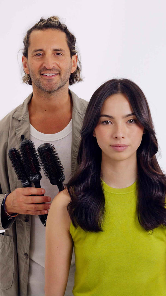 ELEVEN AUSTRALIA Small Round Hair Brush for Blow Drying & Blow Out Styling - Roller Brush for Women & Men, Professional Style Tool for Curling, Magnesium Barrel, Boar & Nylon Bristles