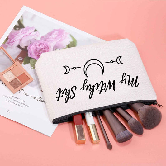 JXGZSO Witchy Gift My Witchy Shit Cosmetic Bag Halloween Present (My Witchy Shit White)