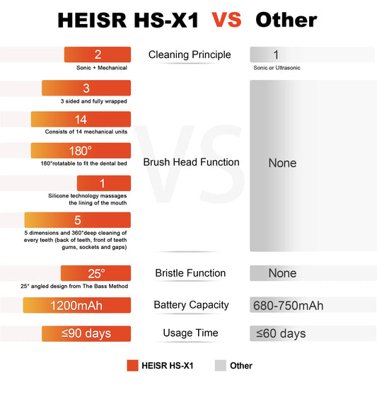 Heisr Premium Customized 3-Sided Ultra Clean Replacement Brush Heads, Innovative 180° Rotatable Mechanical Brush Head, 25° Angled Soft Bristles, for Ultimate Cleaning with Heisr HS-X1, 2 Count, HS-T1