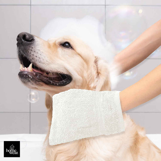 Homewear High Rise Stripe 6 Pack 6 x 8.5 Wash Mitt Set, Low Twist, Highly Absorbent, Gentle Hand and Face Cloth, European Style with Loop, White
