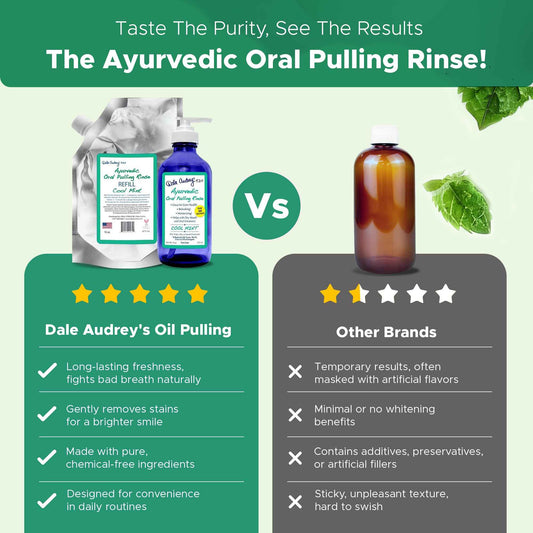 Natural Oil Pulling for Teeth and Gums | Organic Mint Flavored Oral Rinse Mouthwash for Bad Breath | Essential Oil & Teeth Whitening Gum for Freshen Breath | Cobalt Glass Bottle with Refill-16 FL Oz