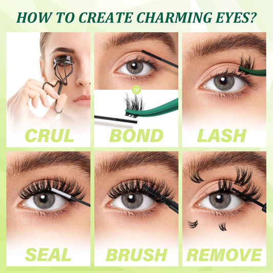 KEYYOU Lash Extension Kit 3D Effect Volume Lash Clusters Kit 144pcs D Curl Waterproof Kit DIY Eyelash Extension Kit with Bond and Seal Lashes Glue Remover Applicators (Kit-PuffSilk V3D01-8-18MIX)