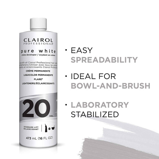 Clairol Professional Pure White 20 volume Crème Developer, 16 oz (Pack of 3)
