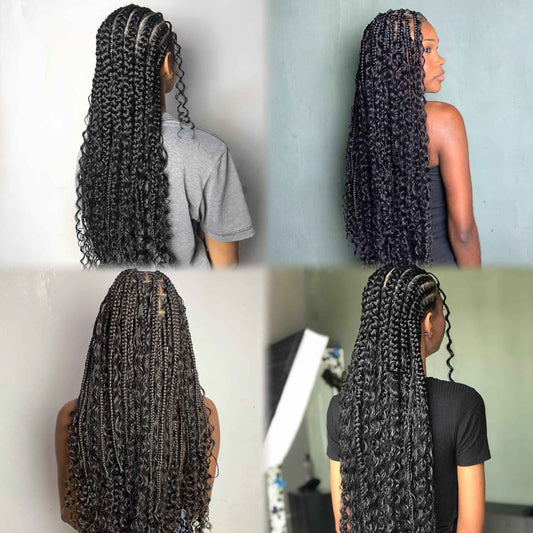 QQPIKHU 24 Inch Boho Crochet Braids Human Hair Mixed Synthetic Goddess Box Braids Crochet Hair Extensions Pre Looped Bohemian Goddess Braids Crochet Hair for Women (#30, 10 Packs)