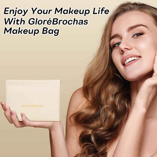 Makeup Bag for Purse:GloréBrochas PU Leather Makeup Pouch Set Large & Small Portable Cosmetic Bags, Waterproof Squeeze Top Coin Purse,Travel Organizer for Makeup,Lipstick, Jewelry,Earbuds(White)