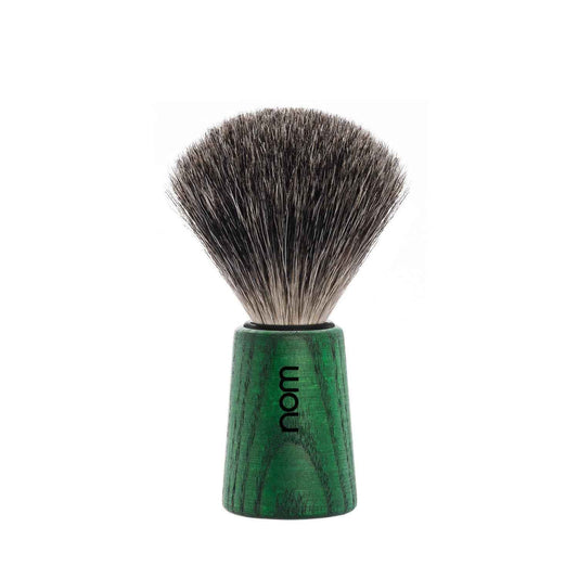 NOM Theo Shaving Brush | Pure Badger Shave Brush for Shaving soaps and creams | Exfoliating Shaving Brush| Green Ash handle