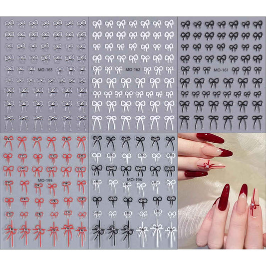 Tyuimhx 5 Sheets Bow Nail Art Stickers Decals 5D Embossed Self-Adhesive Bow Nail Stickers with Rhinestones Designs Silver Red White Black Nail Decals Supplies for Women DIY Manicure Decorations