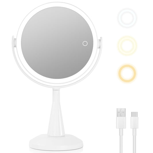 LUKYMIRO 1X 10x Magnifying Mirror with Lights, Double Sided 8" Lighted Makeup Mirror, Rechargeable, 360 Degree Rotation, White Plastic Frame, 8.6" L x 8.6" W x 13.8" H, Modern, Bathroom, Beauty, Home