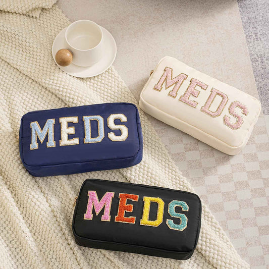 Chenille Letter Patch Nylon Medicine Packages,Cute MEDS Travel Makeup Bag with Metal Zipper, First Aid Purse Organizer Cosmetic Bag for Women and Girls(03Navy)