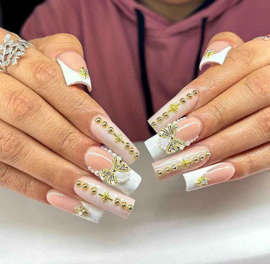 1 Box Gold Caviar Beads for Nails Charms Half Round Pearl Nail Charms Nail Jewels for Nail Art Kit,Small Stainless Steel Bead White Pearl Bead Flat Back Pearls for Crafting Charms for Nails Design