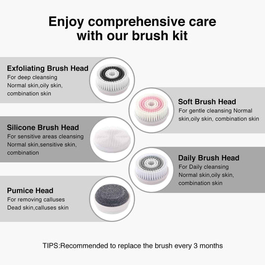 UMICKOO Face Scrubber Exfoliator,Facial Cleansing Brush Rechargeable IPX7 Waterproof with 5 Brush Heads,Electric Face Spin Brush for Exfoliating, Massaging and Deep Cleansing (Black+Gold)