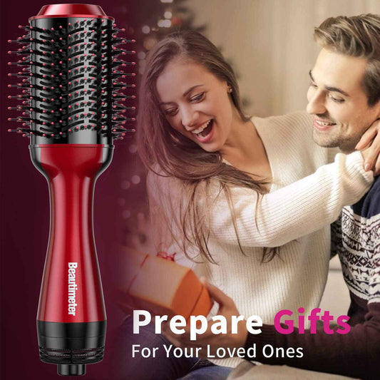 Beautimeter Blow Dryer Brush, Hot Air Brush One Step Hair Dryer and Styler Volumizer, 4 in 1 Negative Ionic Hair Styler with Oval Barrel for Smooth, Frizz-Free Hair Types, Red & Black