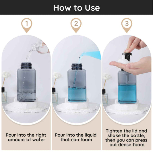 Segbeauty Empty Foam Soap Dispenser Pump Bottles 15.2oz 2pcs, Refillable Foaming Hand Soap Dispenser, 450ml Gray Foam Bottle with Waterproof Stickers, Plastic Square Liquid Foaming Container BPA Free