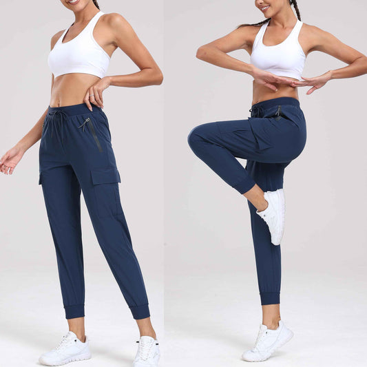 Oalka Women's Cargo Hiking Pants Lightweight Travel Pockets Joggers Quick Dry Navy Blue 2XL