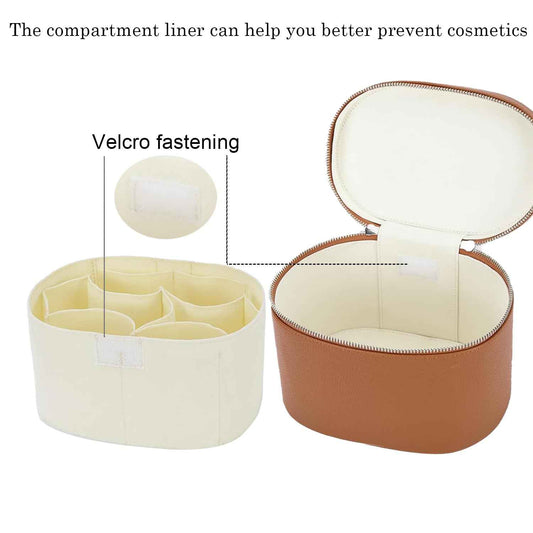 IEMIEBOAMGNOY Leather Make Up Bags With Compartments, Brown travel Cosmetic Bags for Women, Parallel Makeup Travel Bags Organizer Equipped With a Detachable Divider