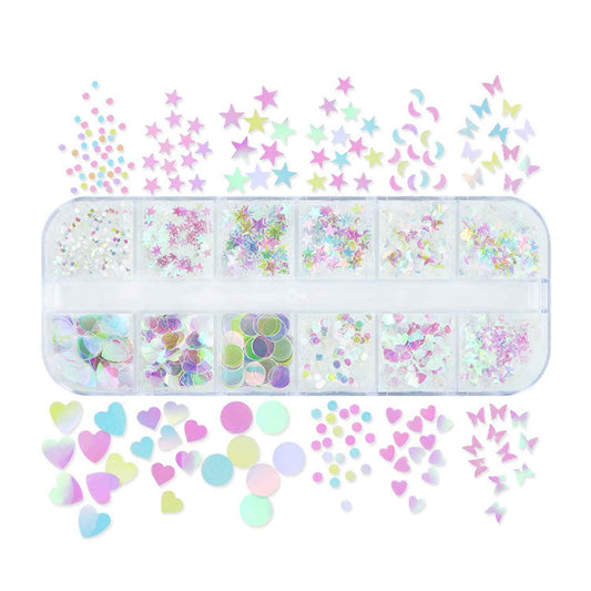 Nail Art Glitter Sequins, 3D Clear Iridescent Ultra-Thin Nail Art Glitter Flakes Designs, Mermaid Love Heart Butterfly Star Moon Round Shapes Nail Glitter Slices for Women Manicure Charms Decorations