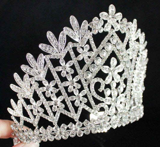 Janefashions Daisy Clear Austrian Crystal Rhinestone Tiara Crown With Hair Combs Wedding Bridal Prom Birthday Party Beauty Contest Pageant T1861 (Silver Plated With Combs)