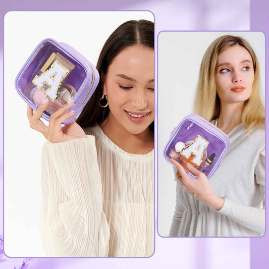 LOFOWN Initial Clear Makeup Bag Small Cosmetic Bag Travel Toiletry Bag Clear Zipper Pouch Purse Organizer Bags for Women (Purple, A)