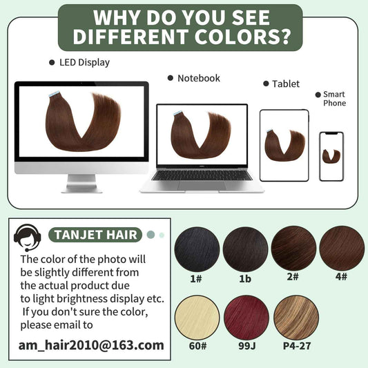 TANJET Tape in Hair Extensions 100% Remy Human Hair Soft Straight Seamless Skin Weft Hair Extensions Human Hair Tape in Hair Extensions Human Hair Chocolate Brown (#4 16 Inch 20pcs 40g/Pack)