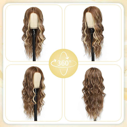 ShowCoco Long Brown to Ombre Blonde Wigs for Women 26 Inch Highlights Blonde Wig Natural Middle Part Synthetic Wavy Hair Heat Resistant Fiber Hair Replacement Wigs for Daily Party 3 Seconds to Wear