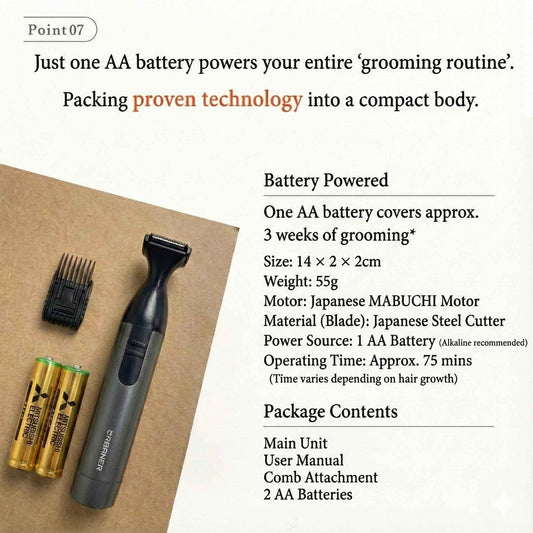 URBANER Mustache Trimmer – Cordless, Waterproof & Adjustable, 0.5–14mm Precision Settings, Lightweight Grooming Clipper with Japanese Steel Blade for Travel Use, Beard Trimmer for Men, Hair Clippers