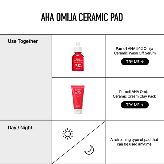 Parnell AHA 9.12% Omija Ceramic Peeling Pads (60 Count) | Gentle Daily Exfoliating Toner Pad with LHA PHA Vitamin C | Smooth Clear Look Korean Skin Care