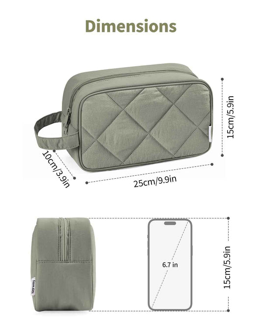 Narwey Travel Toiletry Bag for Traveling Women Travel Bag for Toiletries, Quilted Makeup Bag Cosmetic Make up Bags Medicine Bag for Girls (Sage Green)