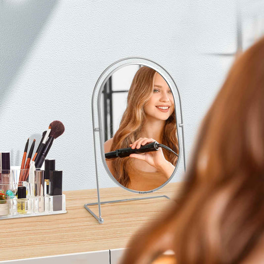 Leafpool Tabletop Vanity Makeup Mirror, 360°Rotation Standing Desk Table Vanity Silver Make up Mirror for Bathroom or Bedroom