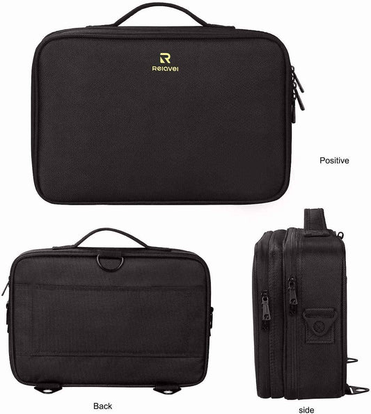 Relavel Travel Makeup Train Case Makeup Cosmetic Case Organizer Portable Artist Storage Bag with Adjustable Dividers for Cosmetics Makeup Brushes Toiletry (medium black)