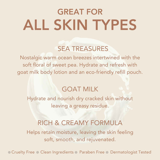 Dionis Goat Milk Skincare Scented Body Lotion and Refill Pouch Gift Set, Cruelty Free Clean & Dermatologist Tested for Dry Skin, Hydrating & Deeply Moisturizing Rich in Vitamins, Sea Treasures