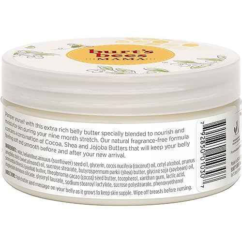 Burt's Bees Mama Belly Butter Stretch Mark Cream for Pregnancy Massages Body & Reduces Scar Appearance, Prenatal & Postnatal Tummy Skin Care, Shea Butter & Vitamin E Rich Formula, 6.5 Oz (Pack of 3)