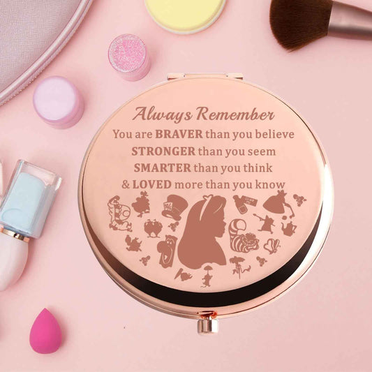 KEYCHIN Alice Fans Pocket Mirror Alice Fairy Tales Gift Always Remember You are Braver Stronger Smarter Than You Think Compact Makeup Mirror(Alice Always-RG)