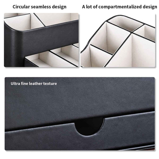 KINGFOM Leather Makeup Organizer with Drawer, Cosmetic Storage for Dresser Countertop and Bathroom Vanity, Beauty Holder for Lipstick Brush Skincare (Black)