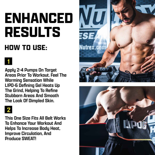 Nutrex Research Lipo6 Defining Gel with Waist Trimmer – Sweat Enhancing Cream for Women & Men with Sweat Belt Bundle