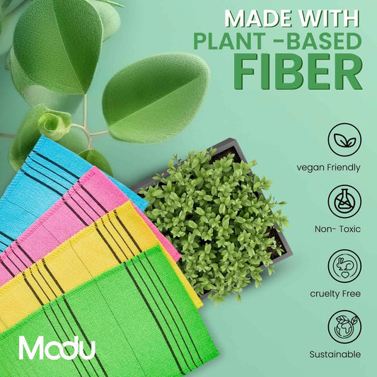 Modu Korean Exfoliating Mitts Large 10PCS (Green) – Exfoliating Gloves Body Scrubber Italy Towel Washcloth for Korean Spa at Home, Dead Skin Remover, 100% Vegan Viscose