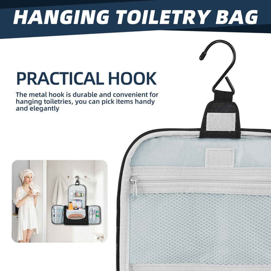 Buruis Large Capacity Toiletry Bag for Women and Men, Hanging Toiletry Organizer Cosmetics Makeup Bag, Water-resistant Dopp Kit Shaving Bags for Full Sized Toiletries, Travel Essentials (Black)