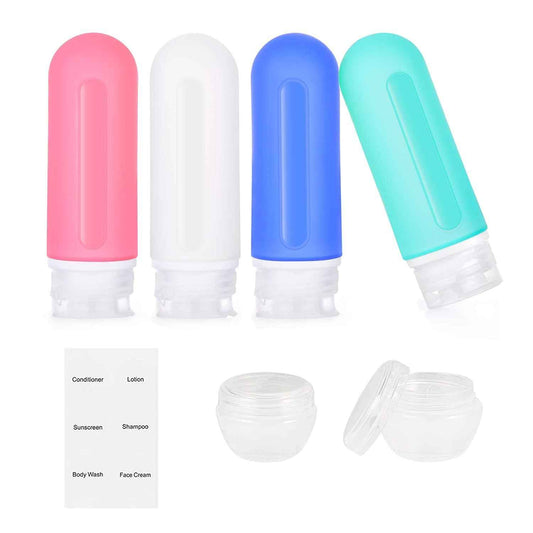 Travel Bottles for toiletries, Tsa Approved 3oz Travel Size Containers BPA Free Leak Proof Refillable Liquid Silicone Squeezable Travel Accessories for Shampoo Conditioner Lotion (4 Bottles + 2 Jars)