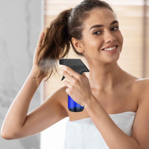 Fumete 20 Pcs 4 oz Glass Spray Bottles Empty Refillable Sprayer Containers with Funnels Labels Black Trigger Sprayers Spray Bottles for Essential Oil DIY Kitchen Hair Plants(Blue)