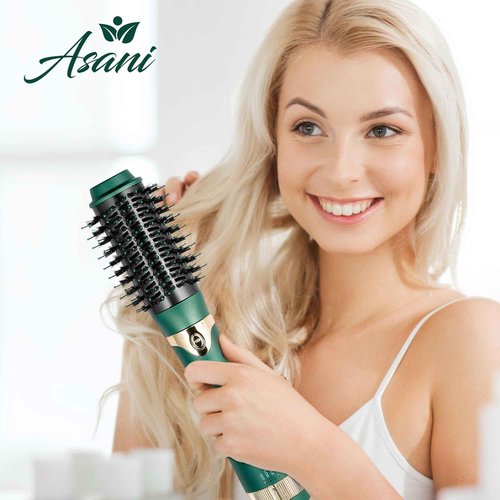 Asani Hot Air Brush - Multipurpose Blow Dryer Brush with Interchangeable Heads, Heated Round Brush for Curling or Straightening, Volumizer and Styling Tool for All Hair Types