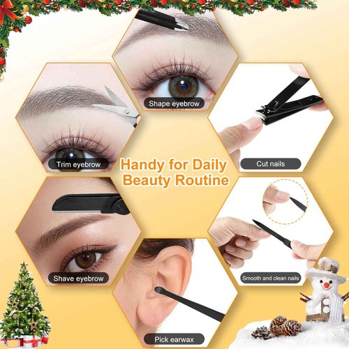Yougai Tweezers Set, 9 Pcs Professional Stainless Steel Tweezers Kit for Women Facial Hair, Precision Eyebrow Tweezer Kit with Curved Scissors and Eyebrow Razor for Ingrown Hair Removal