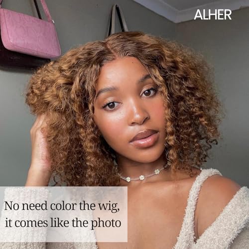 ALHER Long Deep Part 2x6 Closure Water Wave Honey Blonde Highlight, Ombre Brown and Blond Wet and Wavy 2x6 Kim K Lace Closure Pre Plucked With Baby Hair, #P4/27 Color Real Human Hair Closure 12 Inch