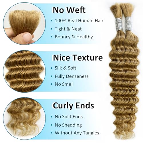 27 Human Braiding Hair 24 Inch Honey Blonde Deep Wave Bulk Human Hair For Braiding Boho Braids 100g Human Braiding Hair Water Wave Blonde Human Hair