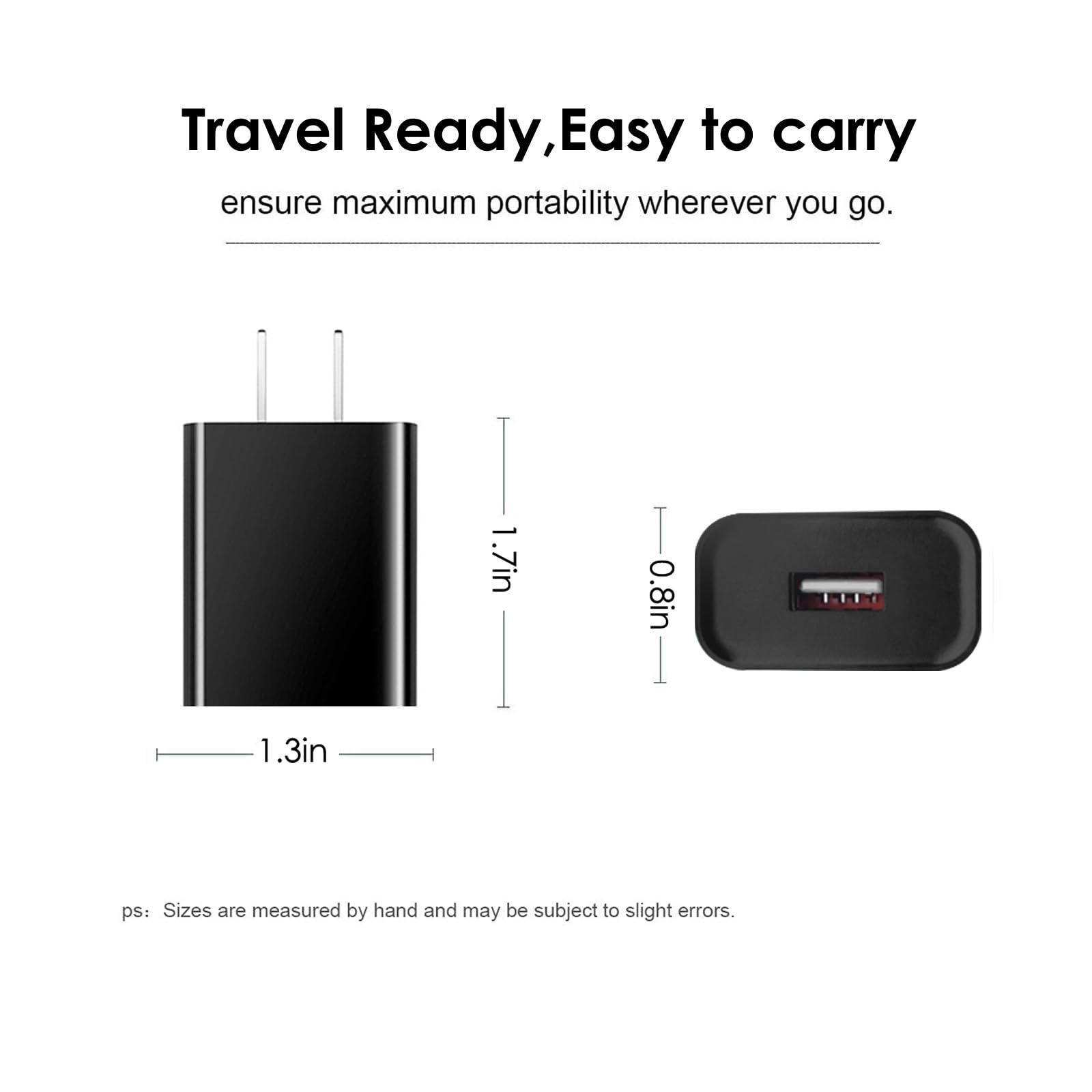 - 5V power adapter USB brick will not overheat when working,usb wall charger has an intelligent protection system against overcharge, overcurrent and overheating. USB wall plug is 0.9 inches wide and will not occupy the position of other plugs when working.