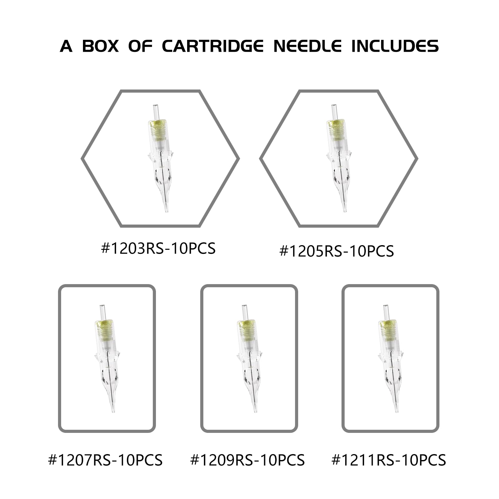 BIGWASP (4th Gen) 50pcs Assorted Disposable Cartridge Tattoo Needles Round Shader Mixed 3RS 5RS 7RS 9RS 11RS (#12 Standard RS)