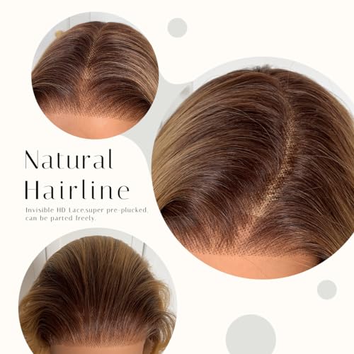 BlackSwern T1B/27 Ombre Honey Blonde 13x6 Synthetic Lace Front Wig,HD 13x6 Lace Frontal Wig Brown To Honey Blonde Pre-Plucked,26inch Body Wave Wigs 200 Density,Pre-Plucked PLUS 1.5¡¯¡¯ Hairline